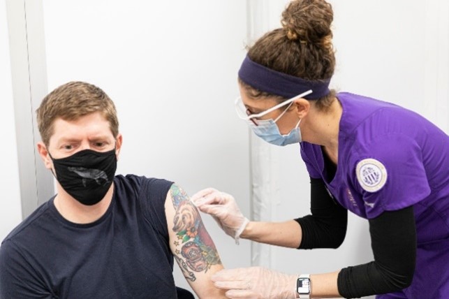 University of Washington nursing students administer COVID-19 vaccines to UW Northwest staff. Credit: University of Washington